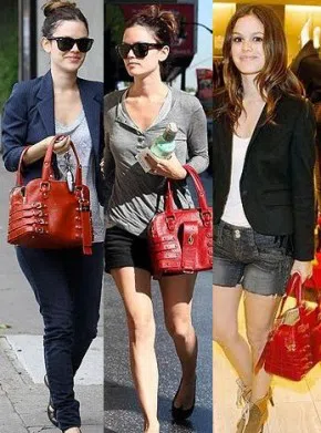 Рейчъл Билсън също е била забелязана да носи ултра модната чанта, но тя се е спряла на секси червения цвя.