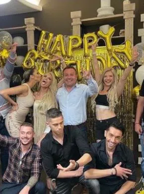 Докато тя бе заобиколена от млади хора и танцува лудо в чалготека, актьорът покани свои приятели на маса с много храна. Сред гостите му бяха братята Халваджиян, Евтим Милошев с жена си Христина, която е бивша на Рачков-все хора наближаващи или минали 50-те.