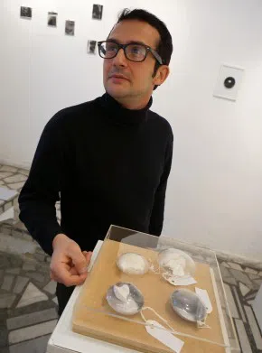 ''Червената точка'' събра двамата македонци със скулптора Николай Йотов, селектирайки негови творби в мрамор, които влизат в елегантен диалог с графиката. И тримата автори са завършили Националната художествена академия в София.