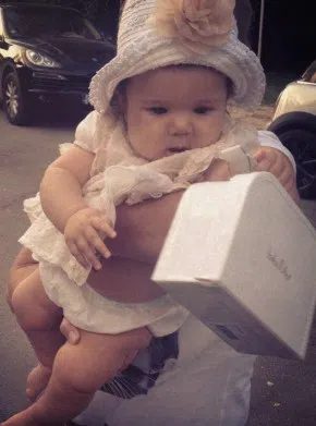 Никол Божинова може и да не може още да ходи, но лъчезарно "позира" с миниатюрното си ферари и показва новите си шопинг придобивки, например чифт бебешки обувки Dolce&Gabbana