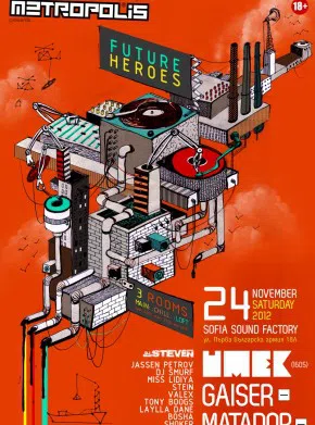 Веднъж стигнали до крайната цел, любителите на първокачествената електронна музика ще могат да се насочат към главната зала, където зад пулта ще се изявят дуото Roboloco (DJ Smurf и Miss Lidiya) от Metropolis Djs, както и международните хедлайнери – Sasha Carassi (Globox, Phobiq), Gaiser (MINUS) и вечният герой от бъдещето – Umek.