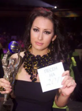 Деколтето на дрешката бе толкова изрязано, че пищните форми на изпълнителката на „Да те бях ранила" едвам седяха на едно място.