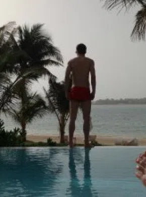 На фотоса се вижда как Бербо, вероятно с половинката си Елена, се препича на басейн в близост до море.