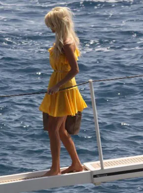 Блондинката събра погледите на пристанището със своята къса жълта рокля и секси тяло.