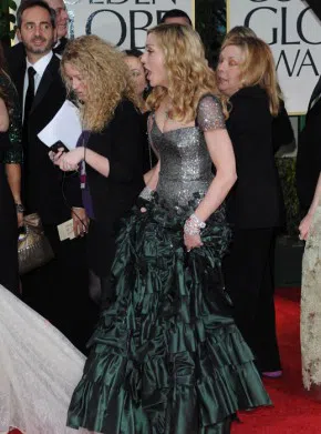 Инцинентът стана малко преди церемонията "Златен глобус", докато двете позираха на червения килим. Тъй като е Кралица, Мадж не погледна къде стъпва и съдра дантелата на тоалета на 29-годишната приятелка на Джъстин Тимбърлейк. Настъпи миг тишина, в която се чуваха само светкавиците на фотоапаратите, след което двете започнаха да се смеят изкуствено.