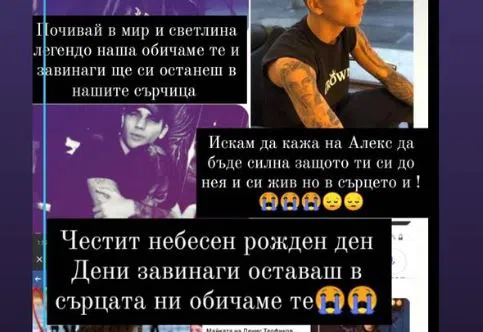 Гримьорката Алекса, която обича да позира в социалните мрежи полугола, изплака болката си от голямата загуба и получи много подкрепа от фенове на трагично загиналия певец. Hotnews.bg припомня, че Теофиков загина след скок от седмия етаж на жилищна сграда през есента на миналата година. Макар семейството му яростно да отрича, че се е самоубил и е бил под въздействието на наркотици, следствието доказа, че певецът сам е виновен за смъртта си.