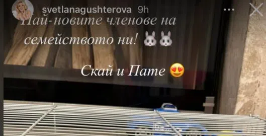 "Най-новте членове на семейството ни! Скай и Пате", написа Гущерова към стори с ушатковците.