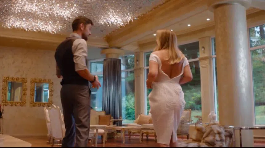 Певицата, която така и не може да влезе във форма след раждането на втория си син, игра епизодична роля на купувачка на баровски имот и както Hotnews.bg вече писа, дори пя, за да изпробва акустиката му. Тя бе пременена в бяла рокля, която трябваше да скрие корема й, но пък остави на показ ръцете й, който са огромни. Блондинката криеше корема и с малка чанта в ръката си, а камерата я даваше предимно в лице, но все пак не успя да скрие фигурата, която няма нищо общо със снимките от инстаграм.