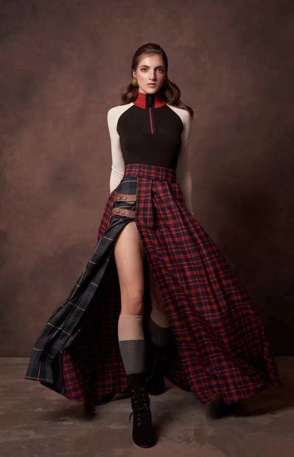 Очарователната певица ще завладее публиката не само с докосващата си музика, но и ще засияе в уникален тоалет, изработен специално за събитието. Дрехата отдава почит към родината на Конър Макгрегър - Ирландия. Тя е елегантна и в същото време смела комбинация от дълга пола в характерния десен с цепка и изчистено боди.