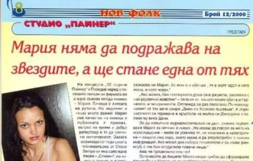 Фотосите от специализирано списание от 2000 година на Мара Отварачката разкриват истинския й нос-доста месест, а от вулгарните й устни все още няма и следа. И преди 24 години тя е била с напомпани джуки, но в рамките на нормалното, особено за лекия жанр. Тогава амбициозната Мария е искала да стане една от звездите във фолка-мечта, която успя да сбъдне преди десетина години, но после захвърли музиката и дори се отказа от нея. В скорошно интервю тя призна, че оттеглянето от сцената е била най-голямата грешка в живота и намекна, че го е направила заради ревнив мъж, припомня Hotnews.bg.