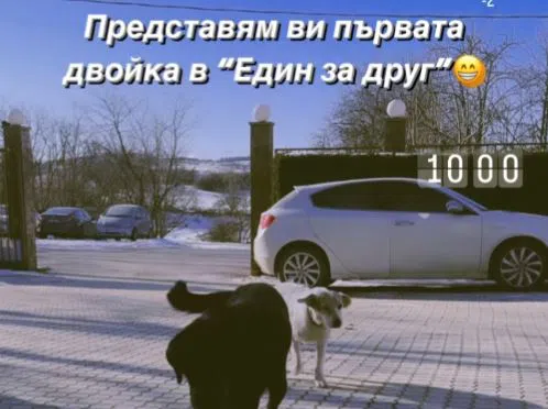 Мария Игнатова, която този сезон застава до Емо Чолаков в "Един за друг" също снима без прекъсване риалити предаването в познатата къща край София. На шега тя показа първата двойка, която влиза в двора на баровската хасиенда-двойка бездомни кучета, които чакат появата на екипа.