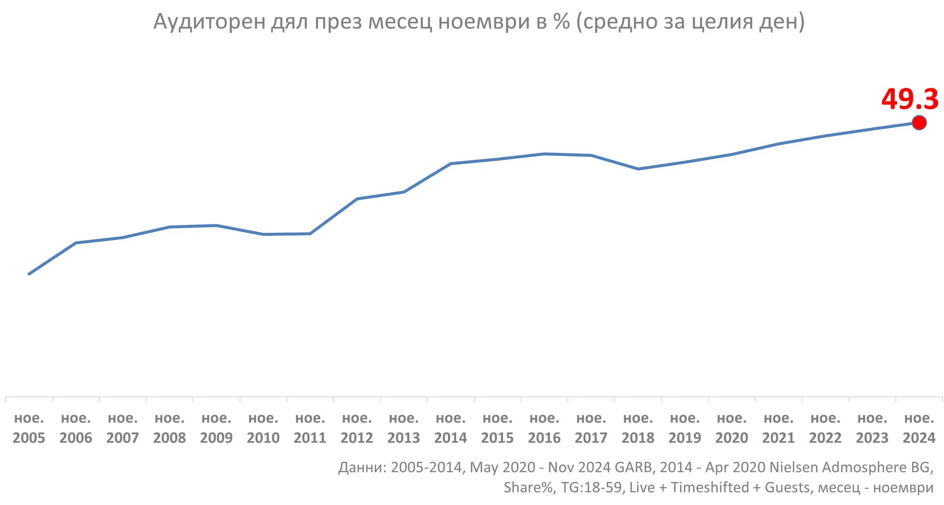 Отстоянието спрямо втората телевизия вече е близо 14 процентни пункта, като по този начин NOVA подобрява рекорда си, отчетен през м. октомври, за преднина спрямо втората телевизия в класацията. Резултатите са потвърждение на далновидната програмна политика и качественото съдържание на NOVA. Ключови предавания на медията в този часови интервал – централната емисия на Новините на NOVA, новите сезони на „Игри на волята“, Big Brother и „Пееш или лъжеш“, отчитат отлични резултати. Риалити форматът Big Brother 2024, който е лидер по зрителски интерес вече приключи, но до края на есенния телевизионен сезон остават още няколко седмици.