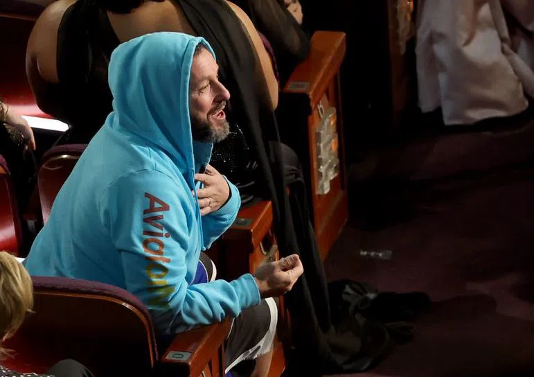 Адам Сандлър наруши дрескода на наградите „Оскар“, като влезе в залата по шорти и така индиректно подкрепи Влодимир Зеленски.