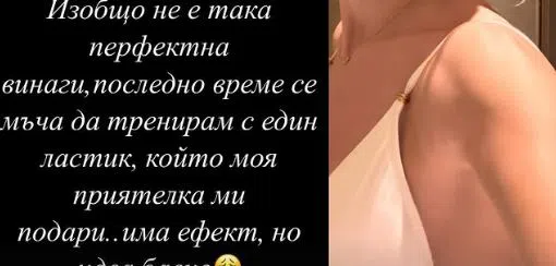 Станкулова издаде тайната и за перфектната си фигура, която не е чак толкова добра според нея, видя Hotnews.bg. Телевизионерката тренира с ластик-метод, който става все по-модерен. Ластикът може да се вземе навсякъде и е идеален за заети жени като синоптичката. Тя е категорична обаче, че успява да се справи.